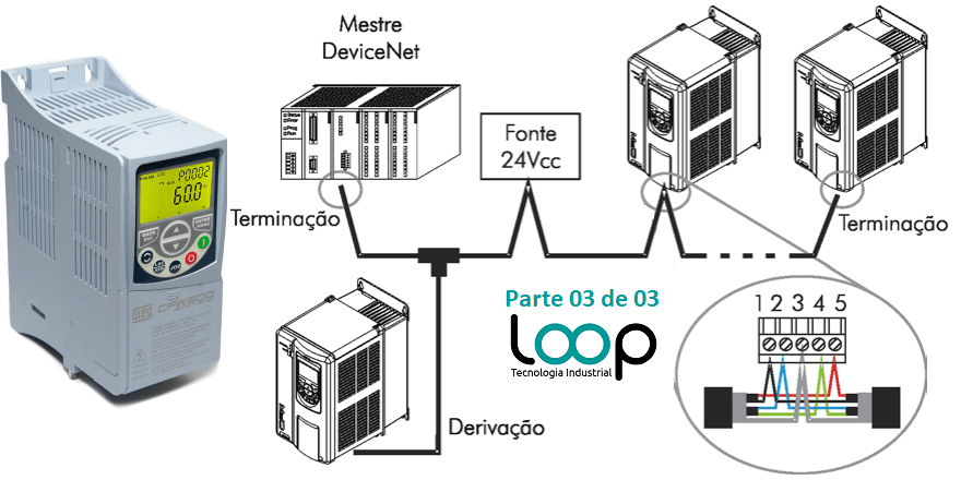 Cartão de interface DeviceNet montado no inversor (a Weg disponibiliza alguns modelos).